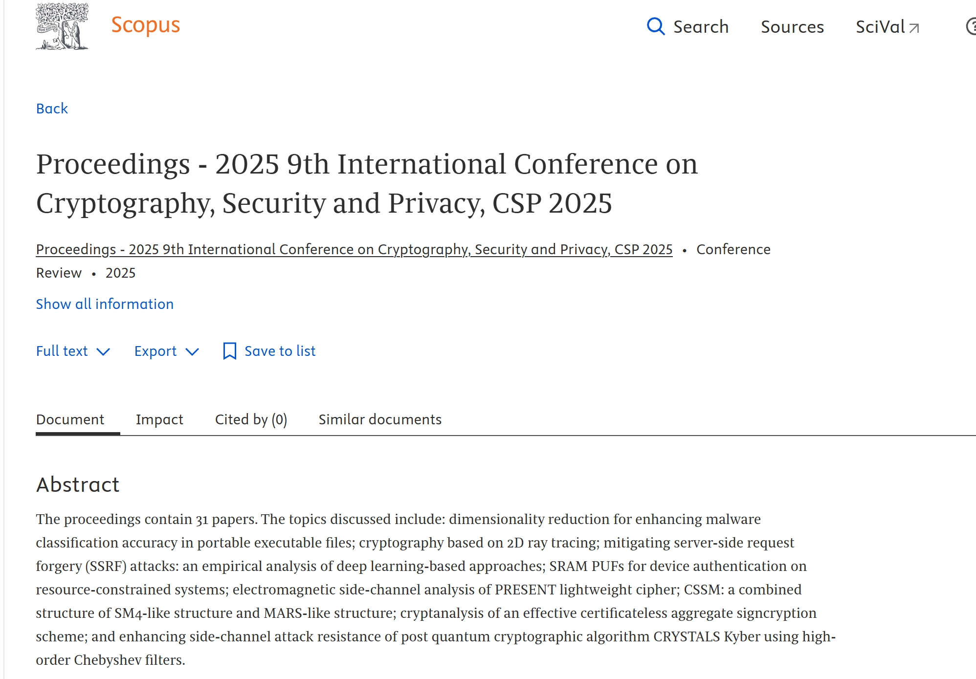 Welcome to the official website of the 2026 10th International Conference on Cryptography, Security and Privacy (CSP 2026) will be held during April 25-27, 2026, in Sapporo, Japan, co-sponsored by Ritsumeikan University and University of the Ryukyus.